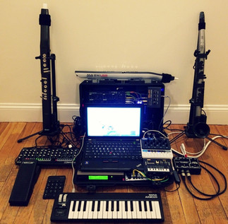 I have been dreaming the opportunity to play music in public area such as church, nursing homes again and made design of the portable EWI performance setup while ago.